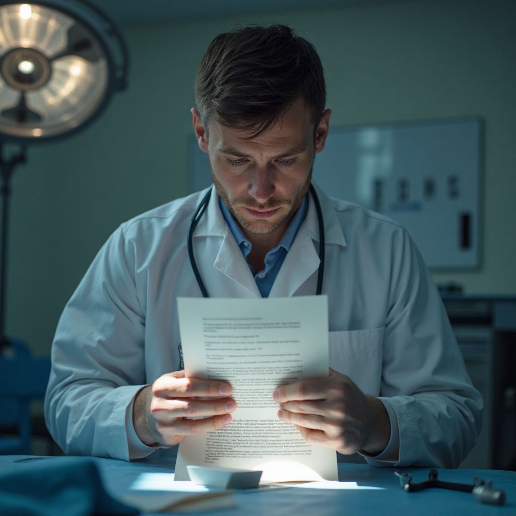 В этот момент на стол упала пыльная бумага — анонимное письмо с жутким намёком: «Твои руки видели больше, чем тебе следовало.» Взгляд хирурга упал на бумагу, и дрожь в пальцах усилилась, словно искра, что может взорваться в любой момент.