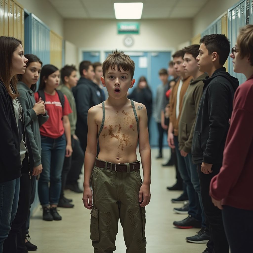 «Ты видел, какой вид у него?» — с издёвкой произнёс один из ребят. «Лучше бы его вообще не пускали в школу», — согласился другой, крутя пальцем у виска. «А может, мама его бездомная, раз он всегда грязный?» — прошептала кто-то с ужасом. Атмосфера разверзлась, как бурное море, и наш герой ощутил, что эта волна может захлестнуть и утопить всего.