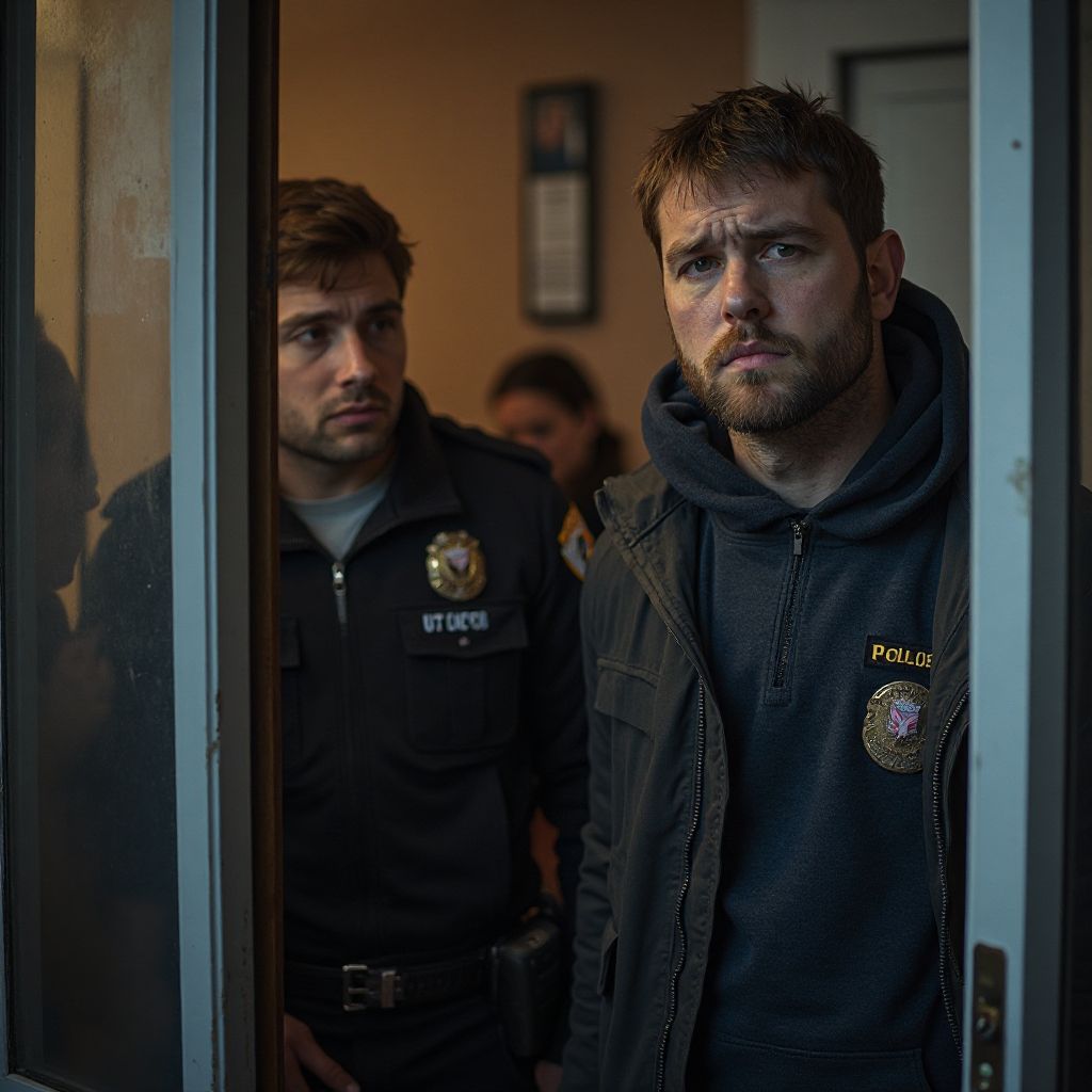 Полиция ворвалась в квартиру, и напряжение взрывалось в воздухе словно молния перед дождём. Тяжёлый скрип дверей, оцепенение соседей, глухой стук шагов, эхом отдававшийся по коридору — всё это было как предвестник скорой правды. Марина, с сердцем, колотящимся в груди, следила за происходящим, её руки слегка дрожали от смеси страха и ожидания. Люди вокруг замерли, наблюдая, как полицейские медленно продвигаются внутрь.
