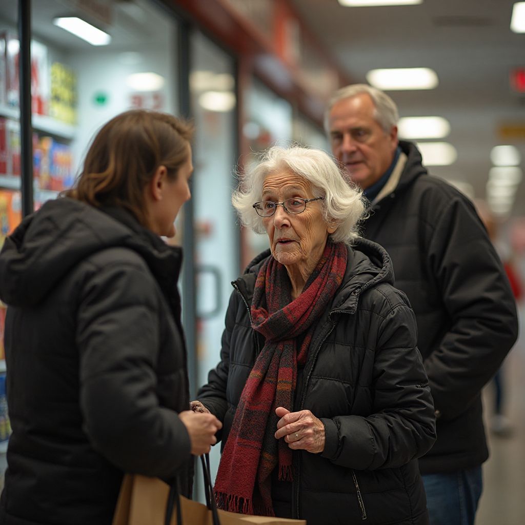 В душе бабушки смешались одиночество и тревога. Она пришла сюда в надежде купить немного продуктов на ужин — последнее, что осталось от её скромной пенсии. Магазин уже почти закрывался, и она собиралась уйти. Но вдруг голос, неизвестный ранее, стал слышен всё отчётливей — разговор двух человек на скамейке у соседнего отдела. Её сердце забилось быстрее, в груди возникло странное сжимание: что-то важное и пугающее грядёт.