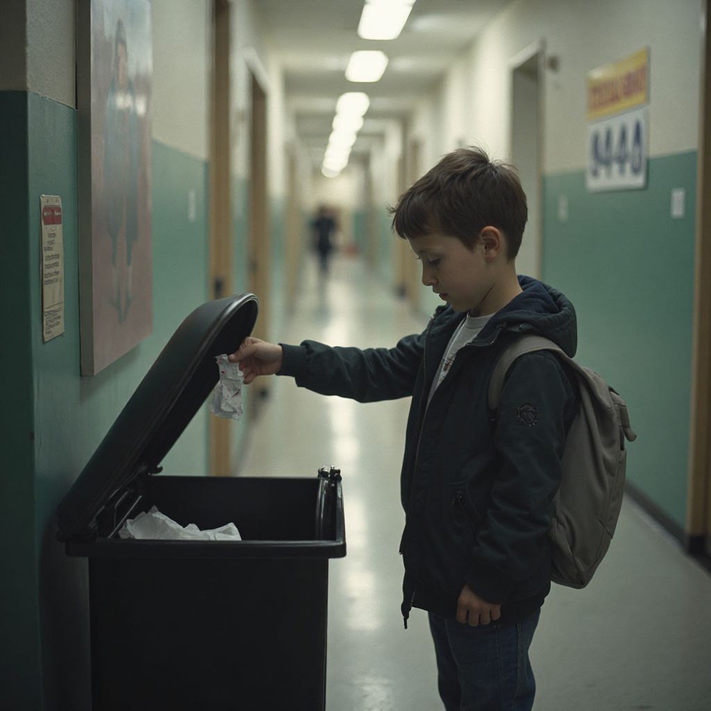 В голове Семёна всё кипело. «Что же делать? Если я вытянуту эту бумажку — будет скандал, меня выгонят из школы. Но если оставить — правда погибнет вместе со мной». Он почувствовал, как дрожь пробежала по спине, и надо было решаться прямо сейчас. Его взгляды то встречались с чужими глазами, полными предательства и непонимания, то убегали к земле, где лежала брошенная бумажка, словно символ всей его жизни.Дрожащими пальцами он протянул руку к урне, готовясь раскрыть тайну, которая могла изменить всё. В этот момент весь шум и движение вокруг словно замерли — наступила тишина, полная невыразимого ожидания.