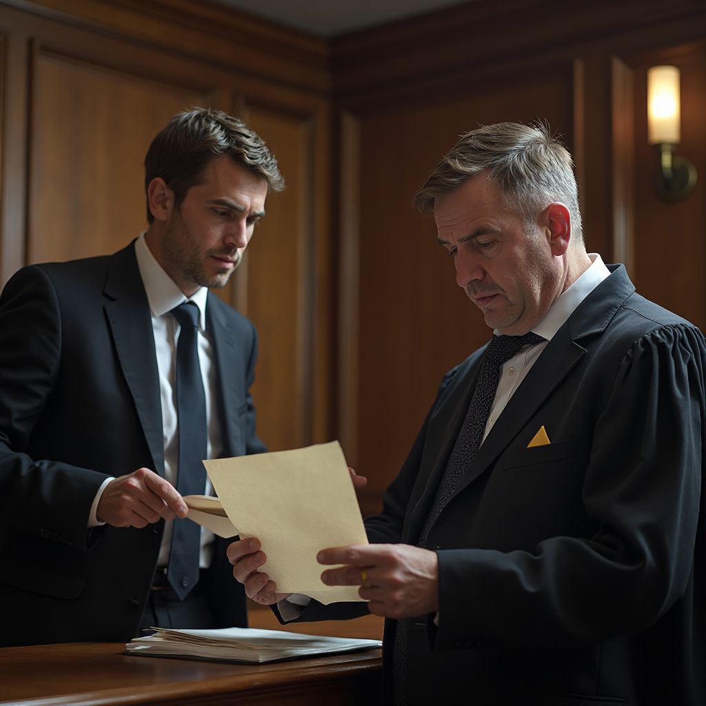 В напряжённом мгновении адвокат почувствовал, как его рука в кармане нашла старое, пожелтевшее письмо, которое он вырвал из забвения на рынке у старушек, забытых всеми. Его сердце забилось в такт с дыханием: дрожь пробежала от кончиков пальцев до позвоночника. Он слышал, как в зале перешёптывались и бросали недоверчивые взгляды, а его разум метался между страхом потерять всё и надеждой.