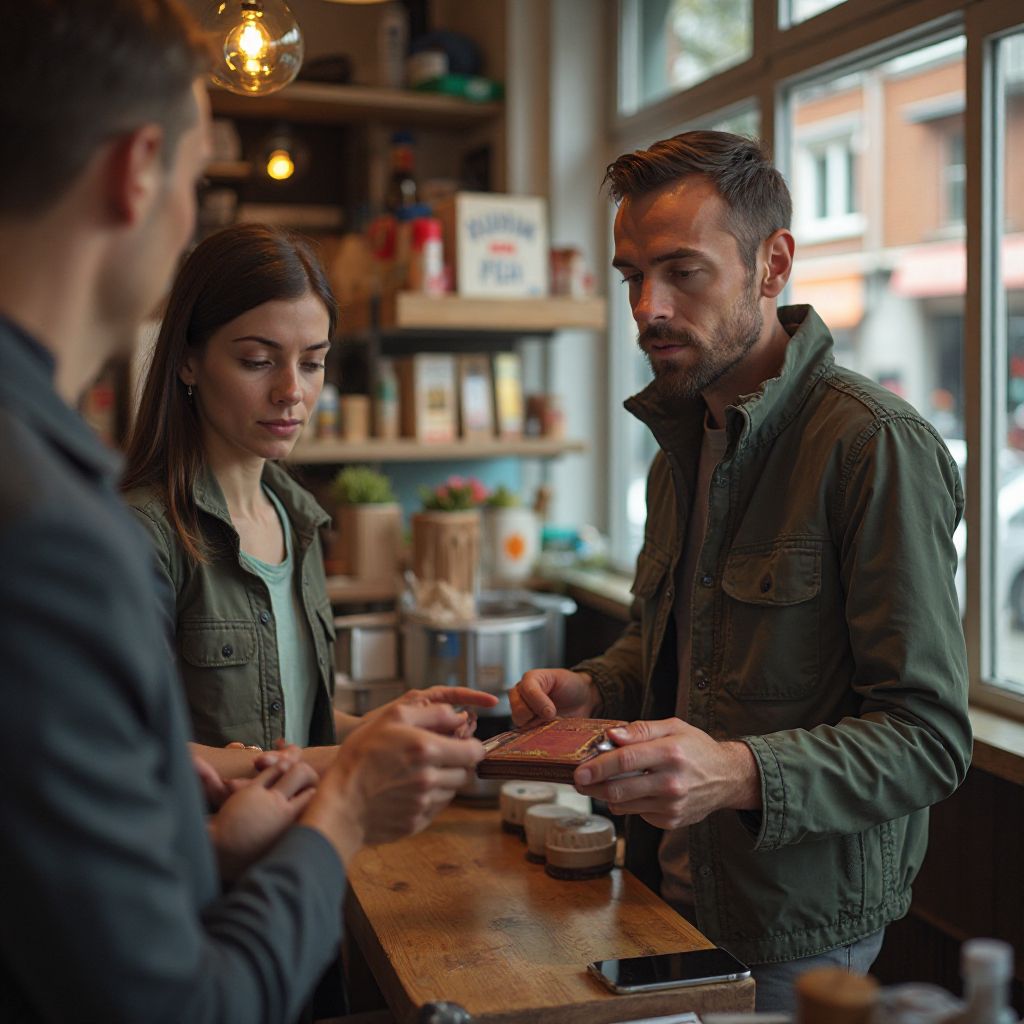 Под шорохи шуршания пакетов девушка заметила у пола что-то — залитая пыльным светом улицы толпа прохожих сгрудилась вокруг мужчины, который медленно подошёл к кассе. В руках он держал коричневый бумажник, из которого выглядывали фотографии, документы и заметки. Никто не ожидал, что именно сейчас начнётся история, способная перевернуть всё.
