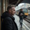 На скамейке у края платформы сидел Андрей — худощавый, в пальто, изношенном и с пятнами, которые рассказывали о многих пройденных днях и ночах на улице. Его глаза, глубокие и усталые, смотрели в серое ночное небо, а в руках он сжимал старый мобильный телефон, экран которого давно потускнел и слегка треснул. Его рост чуть выше среднего, плечи сутулились от усталости, а волосы, черные и редкие, торчали во все стороны. Вокруг проносились прохожие с богатой одеждой, западными телефонами и коктейлем слов, которые казались ему чужими и недоступными.