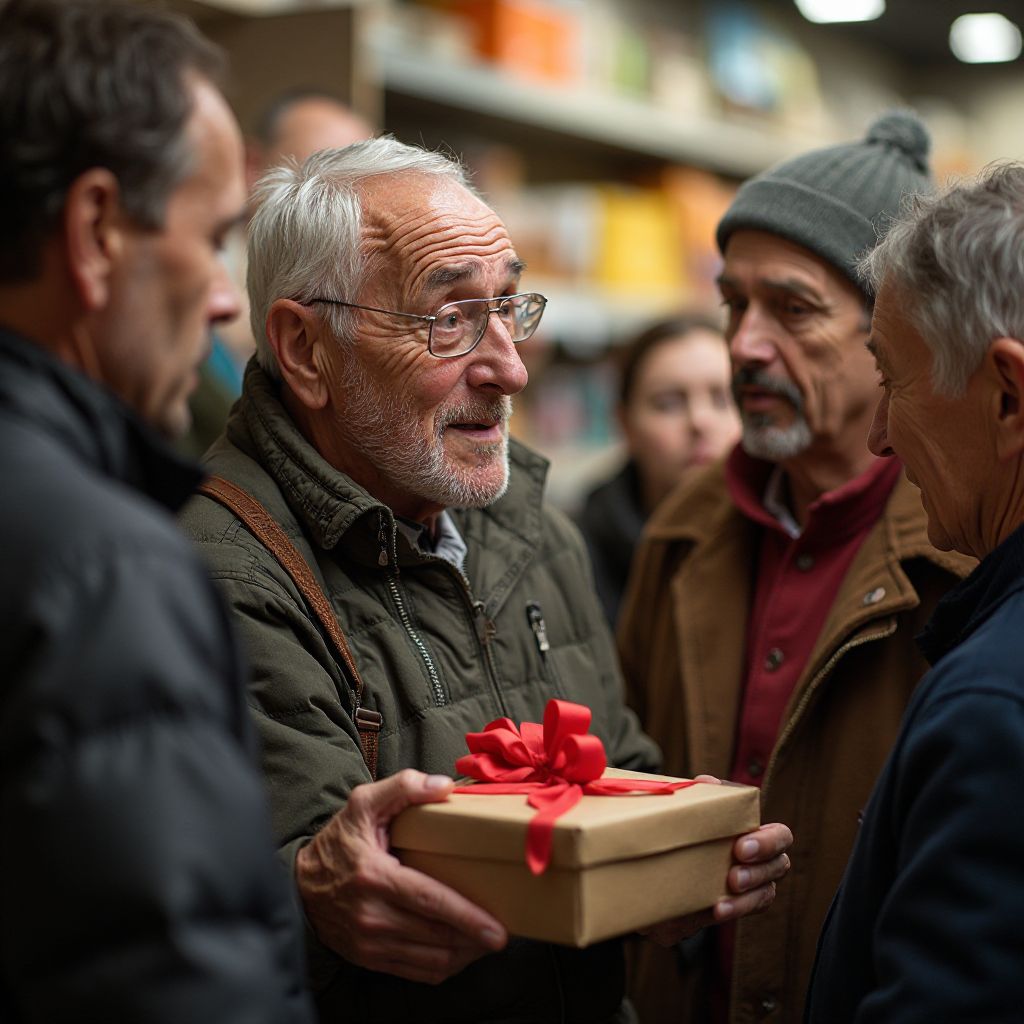 Мысли старика крутились словно клубок вранецти: «Кто мог подумать, что именно в этот день судьба так жестоко сыграет со мной? Я просто пришёл за хлебом, и всё… только что-то внутри не даёт уйти. Этот подарок — он не для меня. Но кто же его отложил?» Сердце слегка учащало ритм, нерешительность наполняла грудь холодом. Ему казалось, что все взгляды невидимо тянутся к нему, словно отслеживая каждое его движение. Он боялся оглянуться, боялся, что увидит жалость или презрение в глазах прохожих.