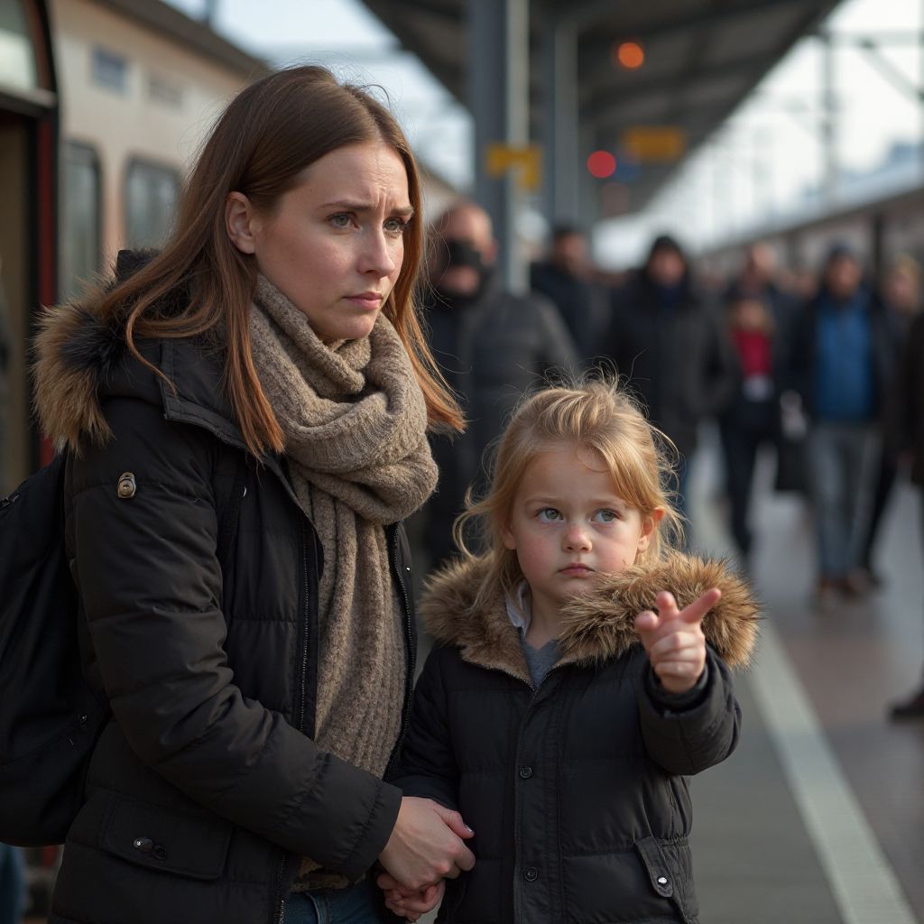 Толпа вокруг, словно каменная стена, остановилась в момент, когда мальчик схватил мамину руку и резко повернул её лицом к себе. Сердце Анны бешено колотилось, дыхание прерывисто вырывалось из груди. Вокзал — обычно наполненный шумом и суетой — превратился в замершее пространство, где каждый звук казался оглушительным. Люди остановились, их взгляды пронзали их словно иглы, а воздух наполнился холодной тревогой.