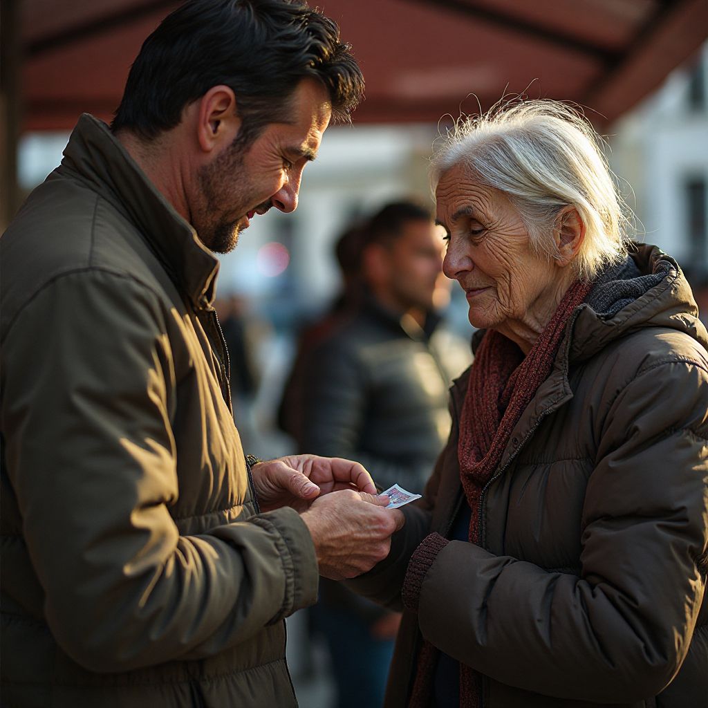 Заключительная сцена разворачивалась на том же рынке, где всё началось. Старушка шла, не спотыкаясь, с лёгкой улыбкой и крепко сжимая руку Петра. «Спасибо вам, молодой человек, — прошептала она, — вы вернули мне человечность». Шум рынка стал казаться теплее, а лица прохожих поменялись от безразличия к участию. Пётр задумался о том, как много ещё таких историй скрывают обычные люди вокруг — людей, которым нужна простая человеческая доброта и внимание.