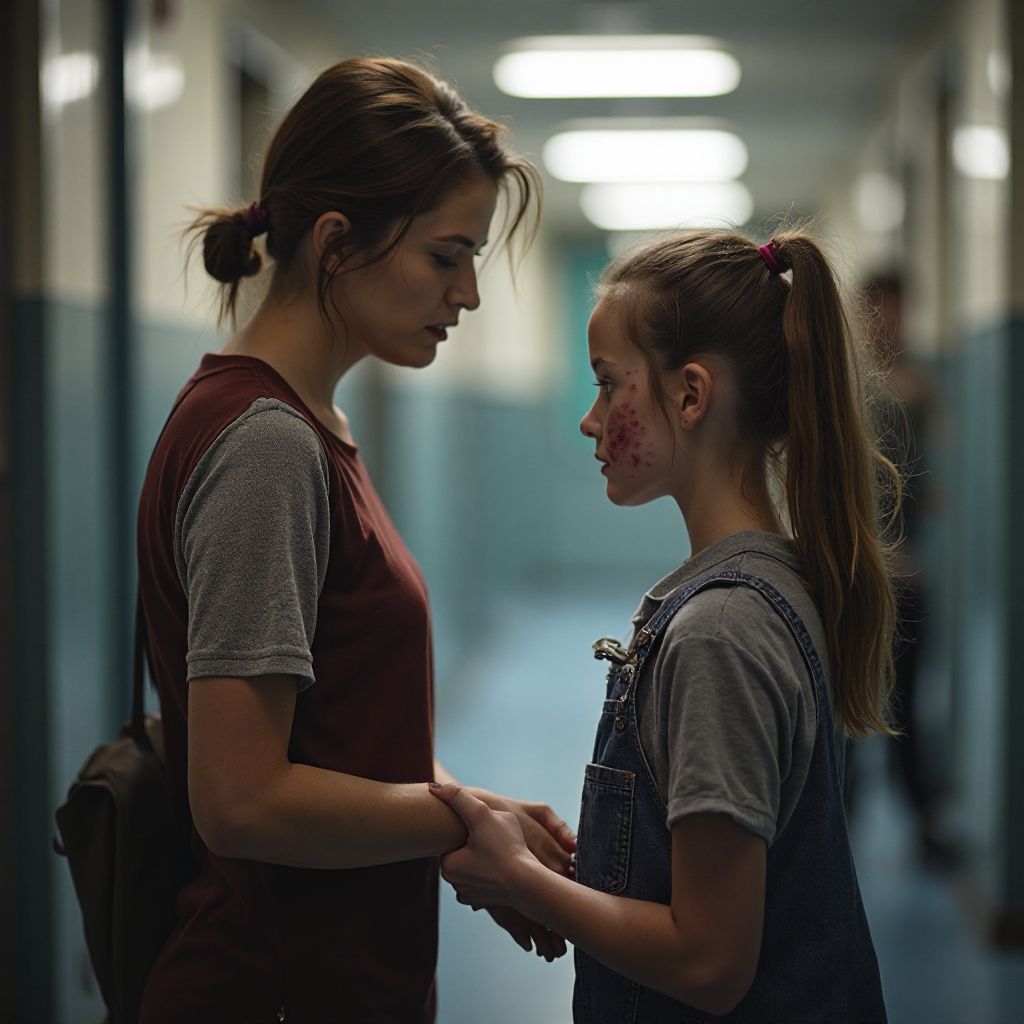 «Мария, иди со мной, пожалуйста», — тихо сказала Анна, глядя на девочку. Та, снизив взгляд, молча последовала за учительницей. Но в её глазах не было ни капли доверия. Внутри Анны дёргался страх, а тело покрывал холодный пот. «Почему она молчит? Почему никто не помогает?» — терзалась она.