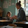 Когда звонок пронзил глухую атмосферу класса, время словно встряхнулось, но дети остались неподвижны. Лица уставшие, но полные тревоги, глаза широко раскрыты и наполнены слезами. Марина Сергеевна стояла у доски, крепко сжимая табличку, на которой было написано больше, чем буквы и цифры — на ней были правда и боль.