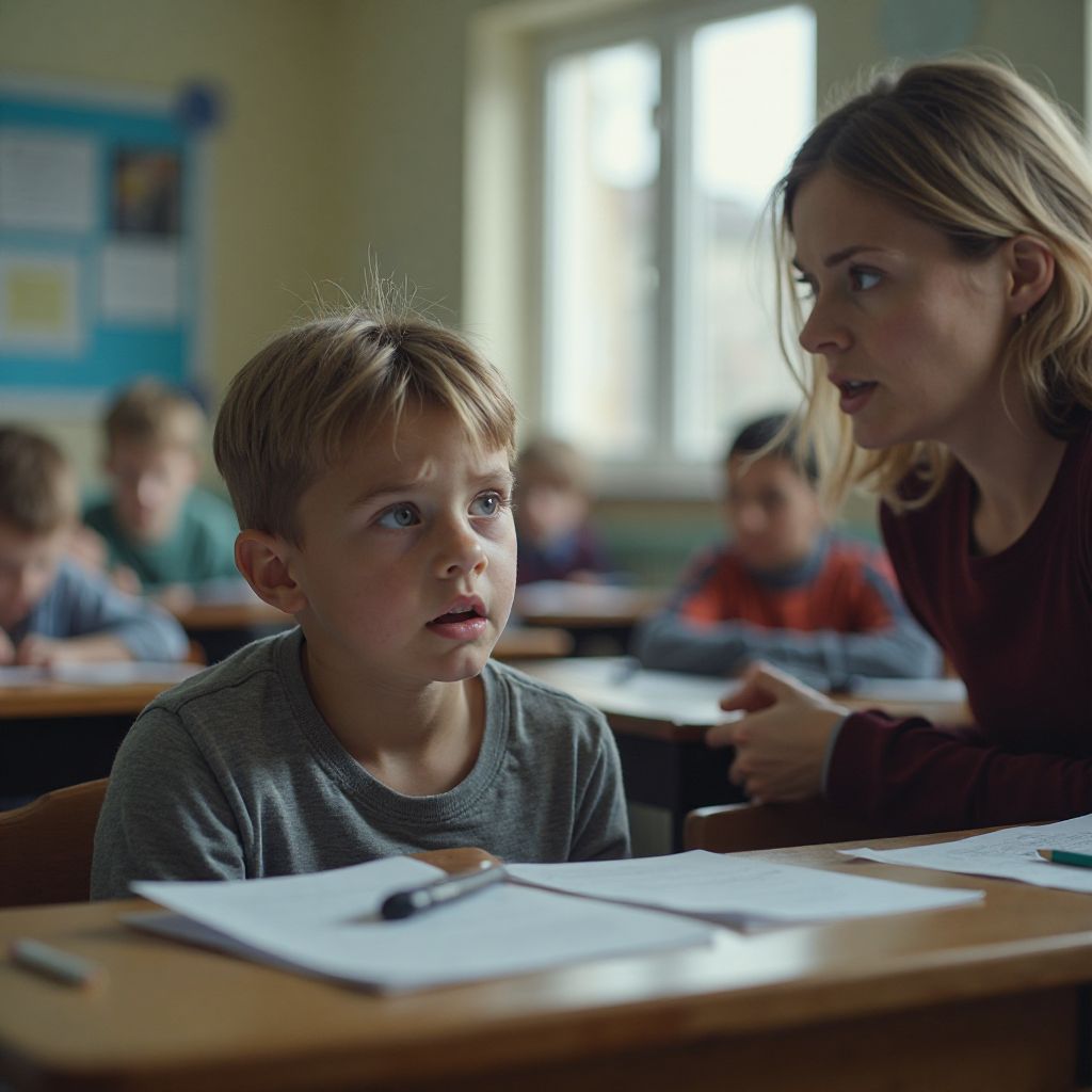 Учительница, повернувшись к классу, внезапно опустила руки и тихо произнесла: «Петя, поднимись. Мне нужно объясниться перед тобой и всеми». Все замерли, чувствуя, как напряжение нарастает с каждой секундой. Сердце мальчика колотилось в груди так громко, что, казалось, его слышат все. Взгляды, полный шок и неподдельная тревога — учеников, учительницы, даже учителей, присутствовавших в кабинете. Пётр медленно поднялся, его дрожащая фигура казалась хрупкой и уязвимой.