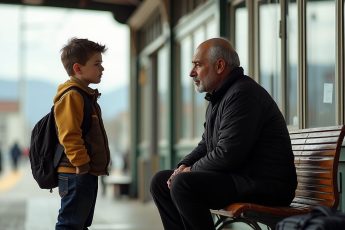 На пустой автобусной остановке поздней осенью ветер пронизывал насквозь, поднимая листья и заставляя