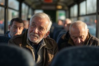Вечер опускался на шумный городской автобус, наполняя воздух смесью сырого дождя и запаха протёртых сидений.