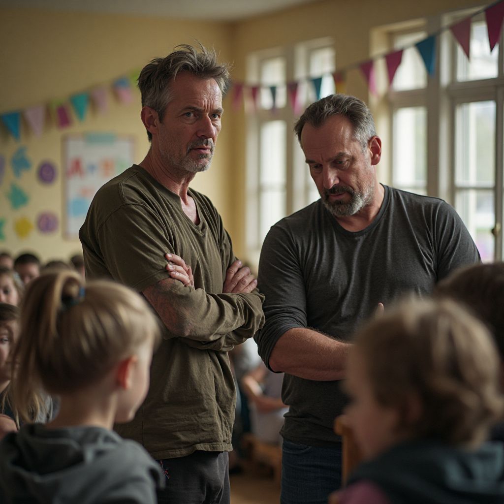 «Что это за человек?» — пробормотал один из родителей, заметив грязного мужчину. «Он что, к нам на праздник пришёл? Невозможно, чтобы так ходить сюда…» — вмешался другой, кивая неодобрительно. Среди шепотов и сдержанных усмешек развернулась тихая буря осуждения. «Вот позор какой, — негромко сказал учительница, не скрывая своего раздражения — папа в грязной одежде не место здесь». Другие родители посмотрели на мужчину с выжидательной смесью презрения и любопытства. «Нельзя так унижать себя перед всеми», — сказала одна мать, сдавленно смеясь.