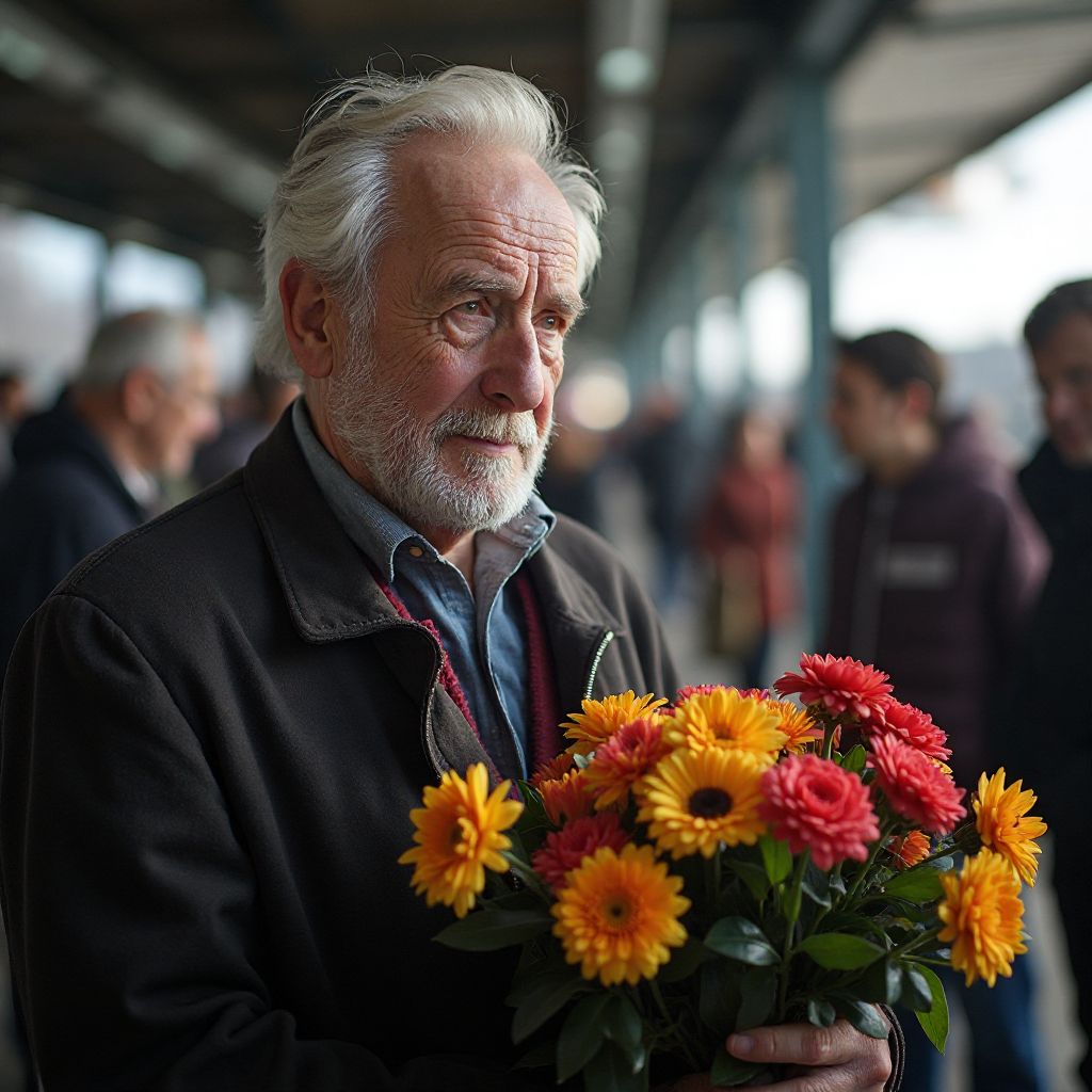 Мысли старика метались, словно прохожие вокруг него. Сегодня было особенно тяжело: память подсовывала ему образы прошлого, проливая горечь и сожаление. «Почему я снова здесь? Зачем каждый день приносить этот букет?» — казалось, он сам себе не мог ответить. Сердце отзывалось болью, но привычка приводила его сюда, к вокзалу, где каждое утро начиналось словно новая драма.