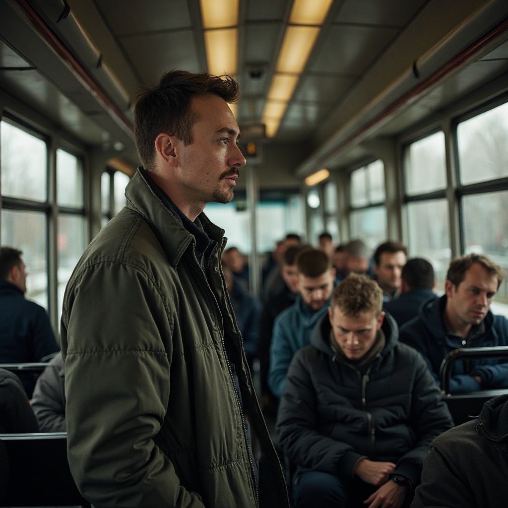 — «Подумаешь, ещё один бродяга жалуется», — бросил кто-то сзади, и тишина в автобусе повисла гнетущей паузой. Взгляды скользнули по мужчине, некоторые недоверчивые, другие — злые. Его лицо покрылось лёгкой испариной, а пальцы сжали сумку крепче.