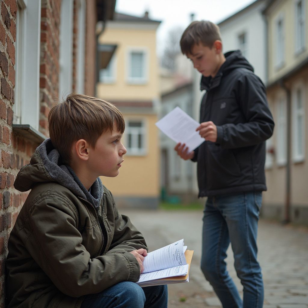 У самого угла школы, на скрипучей скамейке с облупившейся краской, каждый день сижал мальчик лет двенадцати. Его худощавое тело было укутано в поношенную куртку, слишком большую на него, с прорезями на локтях, через которые виднелась грязная рубашка. Его большие карие глаза, обрамлённые пёстрыми ресницами, изучали проходящих мимо сверстников, но взгляд был всегда задумчивым, будто он куда-то далеко улетал мыслями. На ногах — потёртые кроссовки, раздолбанные и почти не сдерживающие стопы. Его тонкие руки крепко сжимали старенькую тетрадь, облепленную наклейками и потертыми уголками, словно это была его последняя надежда.
