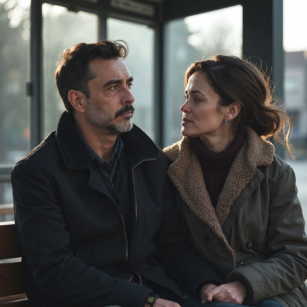 Непогода окутывала городской автобусный павильон густым туманом, который сковывал все вокруг, словно плотное одеяло. Холодный ветер резал лицо, заставляя людей крепче закутываться в потрёпанные пальто и шарфы. Звуки редких шагов и приглушённый гул машин проникали сквозь серый мрак утра. Запах влажной асфальта смешивался с тонким ароматом гари от недалёкого кафе, где уже пахло свежим кофе. Свет тусклого фонаря колебался, бросая причудливые тени на мокрый тротуар. nnУ остановки стоял он — мужчина средних лет, покрытый слойкой паутины эмоций, словно невидимой бронёй. Его глаза — влажные, усталые, с красными прожилками — смотрели в пустоту, а из-под наброшенного на плечи ветхого плаща выглядывали изношенные ботинки. Руки сжимали кулаки так крепко, что кожа побелела. Он казался потерянным, частью этого мрачного утра, но в его душе бушевала тихая буря. Его одежда — старая, запятнанная — говорила о долгой и нелёгкой борьбе. nnМысли разбегались молниями в голове: «Почему я здесь? Почему эта остановка стала границей между прошлым и неизвестным?». Его сердце колотилось с раздражающей неровностью, словно пытаясь пробиться сквозь железные стены отчаяния. Этот мужчина, казалось, был не просто прохожим — он носил с собой груз целой жизни, полной утрат и пренебрежения. Вот почему на его лице играли едва заметные слёзы, которые он отчаянно пытался скрыть. nn— «Пожалуйста, уйди отсюда, — почти тихо прошептал один из прохожих, — тут не место для слёз». n— «Он просто бомж или ещё кто-то?» — спросила женщина с младенцем, оглядываясь на мужчину с опаской. nНа эти слова он не ответил, лишь прижимая голову к холодному металлическому прилавку. В воздухе повисла неловкая тишина, прерываемая только шёпотом и лёгким шелестом листьев, когда вдруг подошла она — незнакомка в ярком красном пальто.nnЕё глаза были полны сострадания и тайны, она не спешила, будто чувствуя напряжение в воздухе. Взгляд её встретился с его дрожащими глазами. «Что же случилось?» — подумала она, шагая навстречу, и в этот момент время словно остановилось. Его слёзы текли свободно, а вокруг казалось, что весь мир затаил дыхание. И вот, что произошло дальше — невозможно забыть!