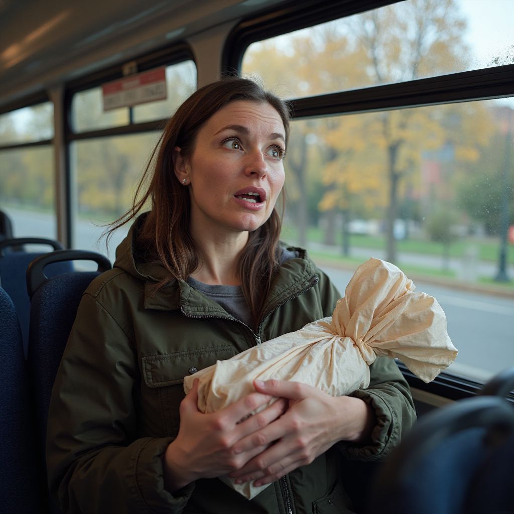 Когда автобус тронулся, она заметила на полу возле ног странный свёрток — словно забытый кем-то пакет. Нервно опустив взгляд, она подняла его и осторожно развернула. Внутри оказалась смятая бумага. Её руки дрожали; сердце начало биться учащённо. «Что же это?» — шептала она про себя, как бы боясь услышать ответ. Рабочие, стоящие у задней двери, заметили это мгновение, и их голоса затихли.