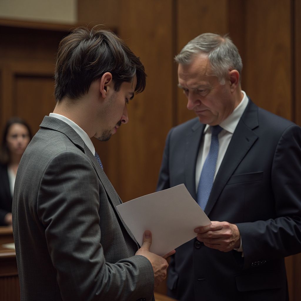 Воздух в зале густел от напряжения, когда свидетель вскинул глаза на прокурора, держащего в руках пожелтевший документ. Все взгляды словно слились в одну точку, и тишина стала оглушающей. Мужчина словно оглох на мгновение, дрожащими пальцами протянул руку и медленно взял бумагу, стараясь осмыслить её содержимое. Сердце его бешено колотилось, дыхание сбивалось, а холодный пот выступал на лбу. В движениях его чувствовалась дрожь — будто он баллотировался между страхом и мужеством.