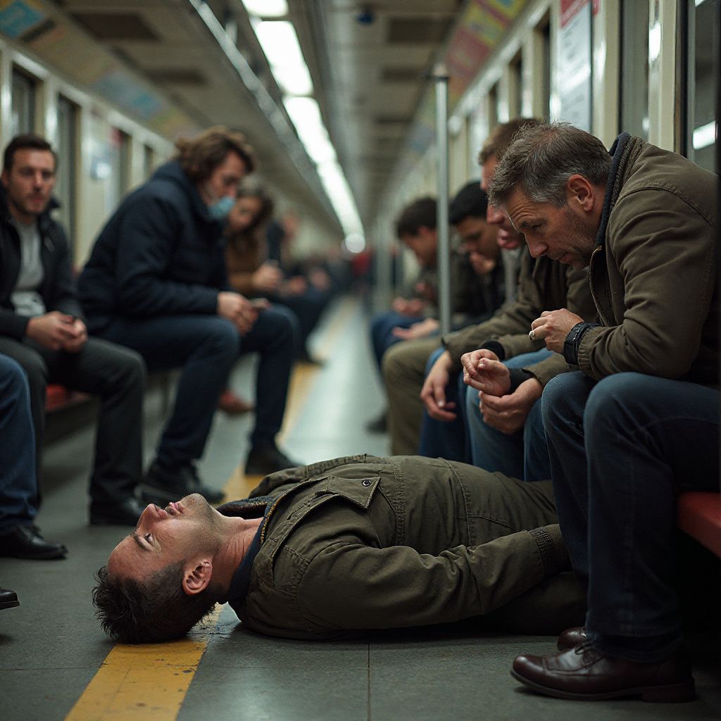 Падение мужчины вызвало взрыв тишины, которую пронзал лишь гул приближающегося поезда и тяжелое дыхание самого героя. Его глаза, полные боли и отчаяния, встретились с холодными взглядами прохожих. Но именно в этот момент, когда казалось, что всё потеряно, произошёл неожиданный сдвиг — с платформы шагнула женщина средних лет в простой темной куртке. «Подождите!» — её голос звучал решительно, но вкрадчиво. Она присела рядом и аккуратно приложила ладони к его лицу, проверяя сознание. «Я — медсестра, не бойтесь, мы вам поможем,» — произнесла она, и в толпе начали открываться новые лица.