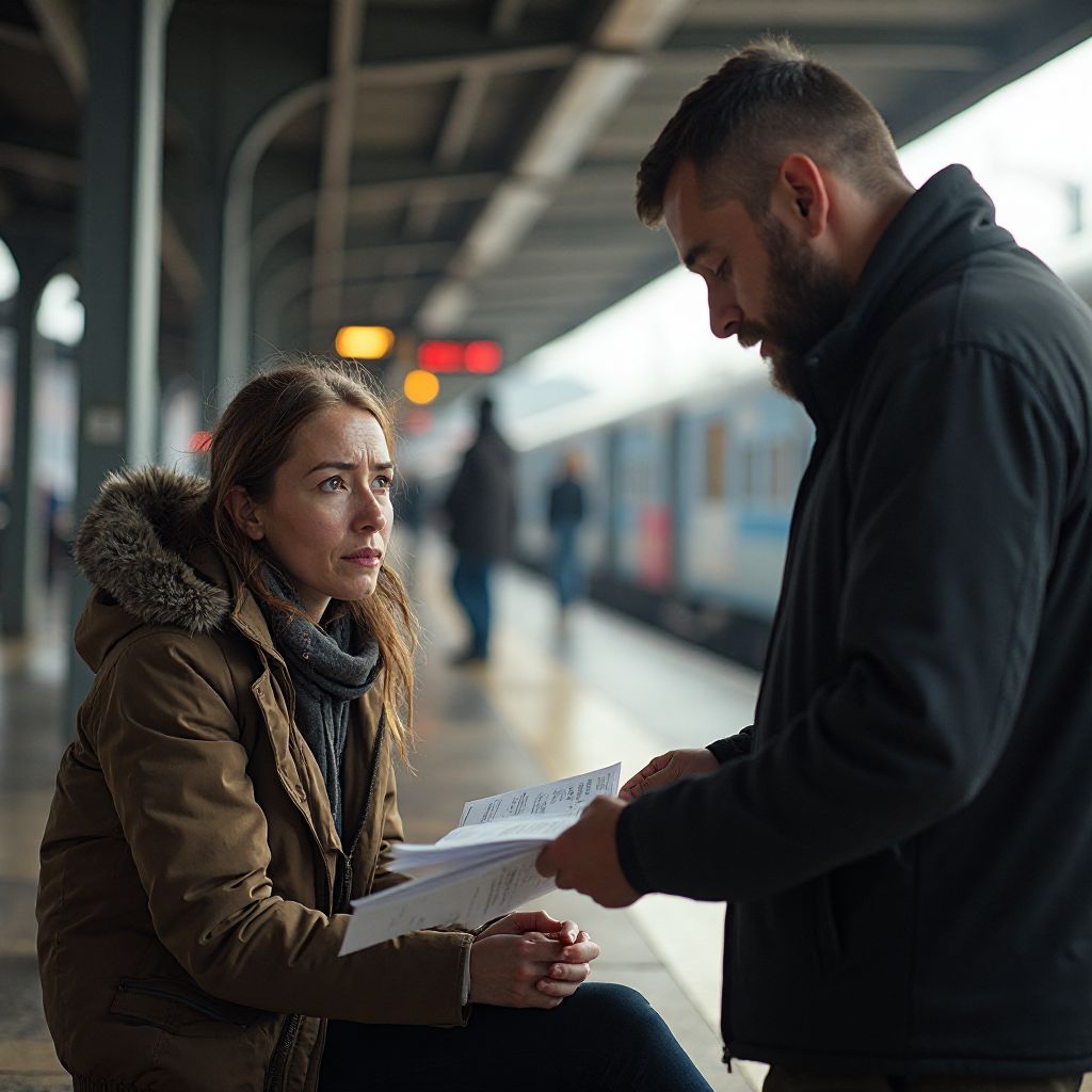 Она сидела на холодной скамье у второго пути — маленькая женщина средних лет в поношенном пальто и изношенных ботинках. Её плечи дрожали от дыхания, а глаза были красные от слёз, которые беззвучно стекали по щекам. Волосы были слегка растрепаны, а руки сжимали сложенный комок бумаги, как будто хранить там — значит не отпустить боль и страх. Никого вокруг не замечала, только тяжелое молчание и собственную тишину, сквозь которую пробивались редкие, прерывающиеся вздохи.