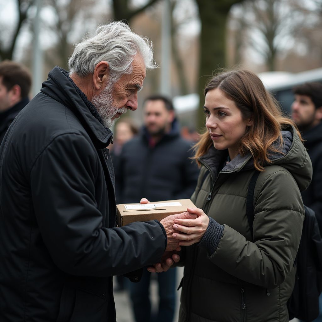 «Поймите, ребята, здесь что-то не так», — тихо настоял он, обращаясь к молодому мужчине в яркой куртке, который пытался пройти мимо. «Этот пакет важен — возьмёшь?» — спросил пожилой, с надеждой в глазах.