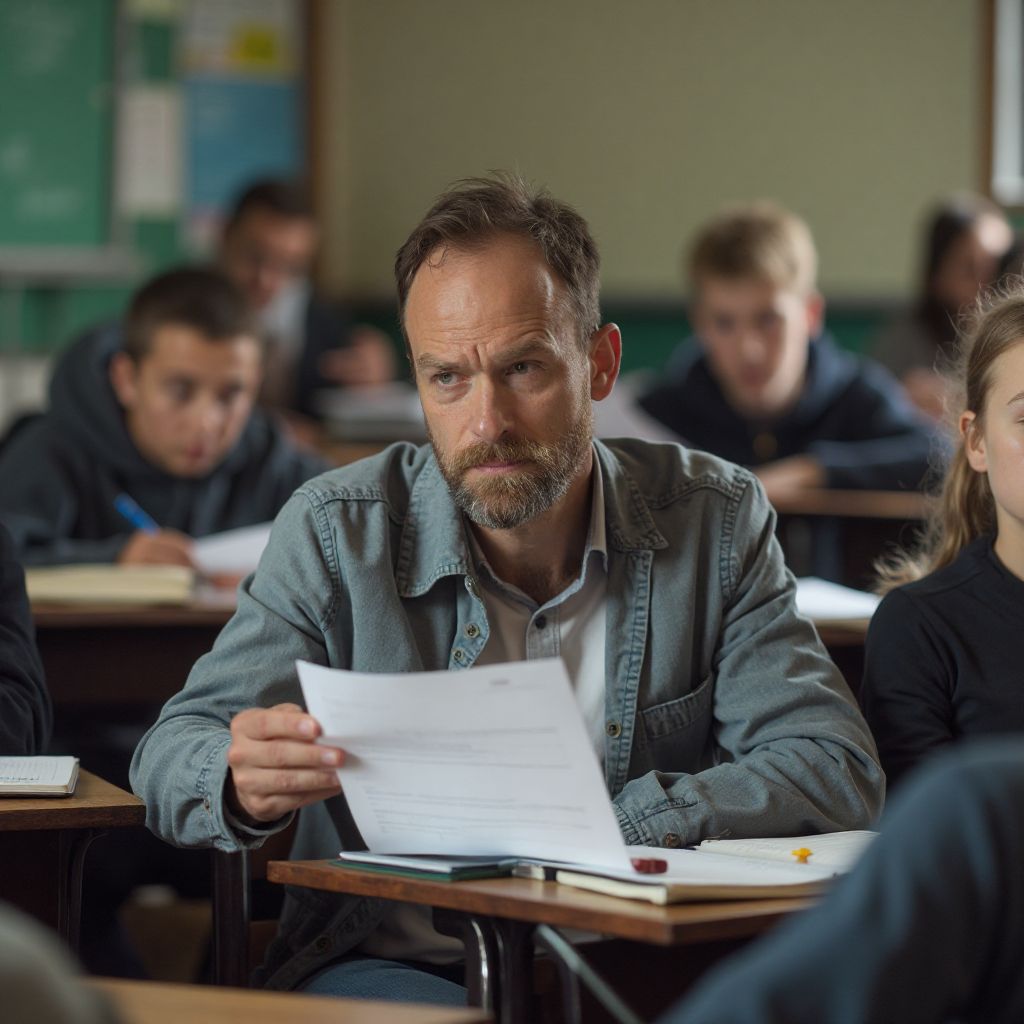 Дверь медленно открылась, и Виктор Петрович вмешался в комнату с тяжёлым дыханием, держась за клочок бумаги в руках. Ученические глаза расширились от напряжения, а вокруг царила смесь тревоги и любопытства. «Посмотрите на этот список», — сказал он, протягивая бумагу, «там имена тех, кто постоянно остаётся незамеченным, кто вынужден прятаться за тенью богатых одноклассников». Тишина стала громче слов.
