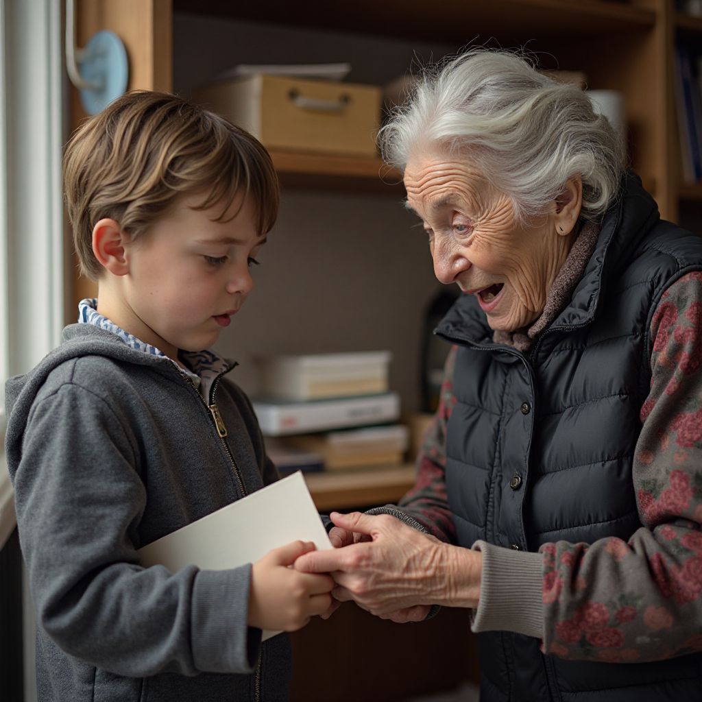 — «Этот мальчик — ты, внучек мой?» — прошептала Елена, почти не веря собственным глазам. В этот момент в магазин вошла еще одна покупательница, соседка и старая подруга старушки, которую побледневшие пальцы только что коснулись конверта.