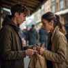 В толпе выделялся Андрей — мужчина лет тридцати пяти с уставшими глазами цвета дождливого неба. Его лица, окаймлённого короткой щетиной, не скрывал тихой усталости. Высокий, стройный, в поношенном плаще и несвежей рубашке, он сдержанно стоял у скамейки, наблюдая за спешащими пассажирами. Его обувь издали казалась дорогой, но при ближайшем взгляде была изношена в носках. В его взгляде читалась борьба за место под солнцем — ежемесячные долги, вечная нехватка денег и тихая надежда на лучшее. Сегодня он приехал сюда не случайно — Андрей искал свою сестру, недавно уехавшую в этот город.