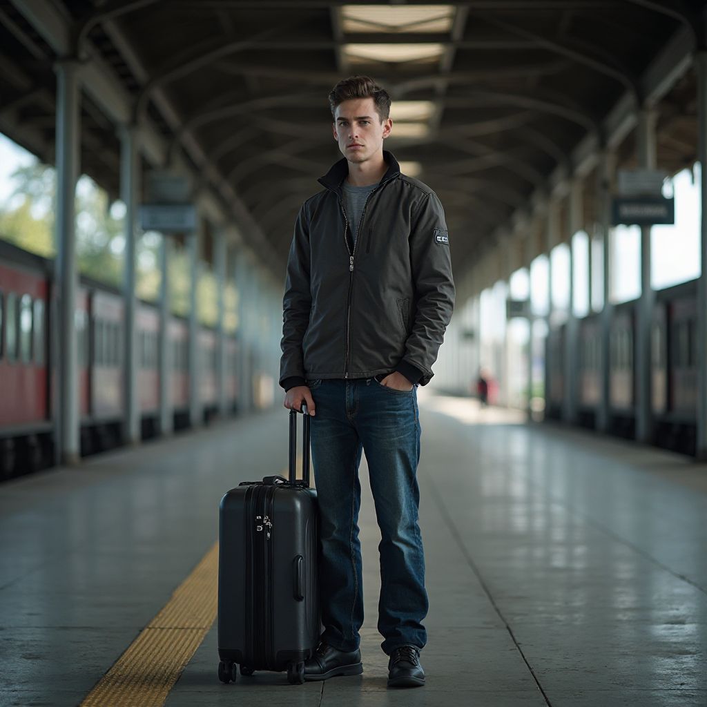 Он стоял у скамейки, поджав плечи, одетый в потёртую, но чистую ветровку, которая несколько мешала его тощему и чуть сгорбленному силуэту. Его глаза, глубокого тёмно-зелёного цвета, блестели тревогой и усталостью одновременно. Тонкие пальцы крепко сжимали кожаную ручку потёртого чемодана, словно таящаяся в нём тяжесть была куда больше видимой массы. Волосы, всклокоченные и слегка влажные от сырости, подчёркивали усталость, прячущуюся под натянутым выражением лица. Рост около 175 сантиметров, осанка неуверенная, но с зачатками внутренней борьбы – так выглядел он, оставшийся один в этом заброшенном месте под вечер.