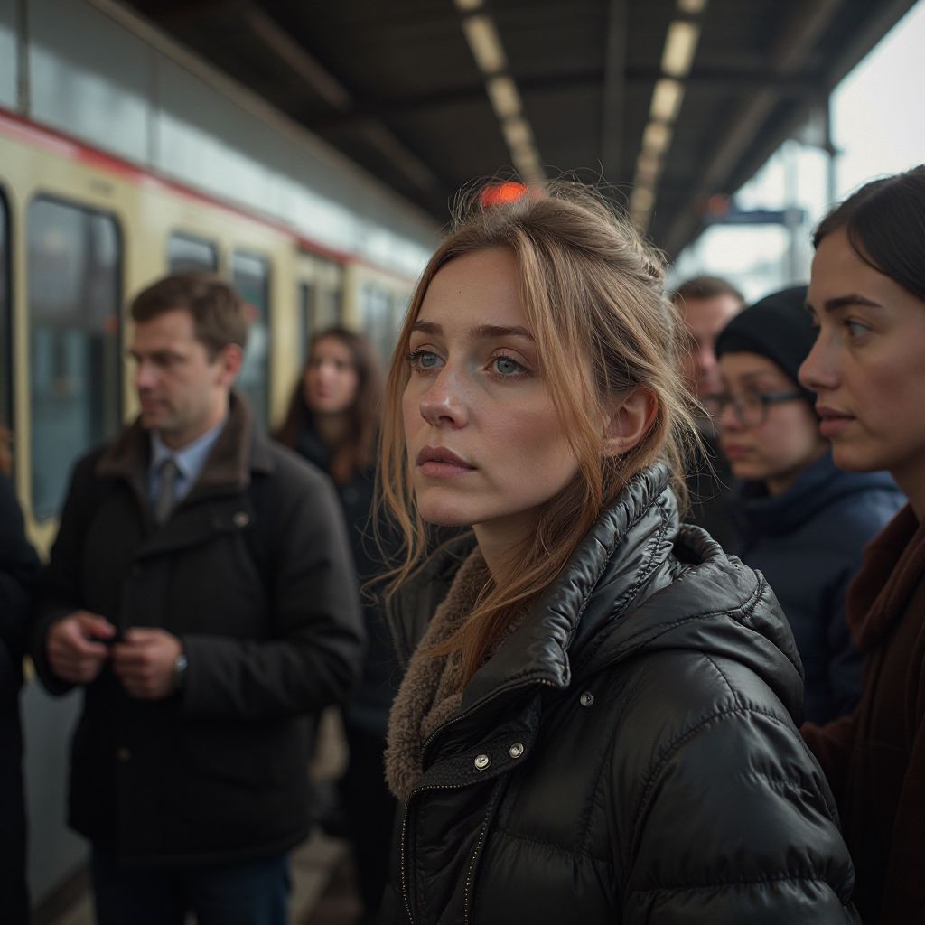 В толпе выделялась хрупкая женщина лет сорока, с искаженными усталостью чертами лица и глубокими морщинами вокруг глаз. Её худые руки неуверенно сжимали потрёпанную сумку, а взгляд, полуприкрытый густыми ресницами, метался между лицами, словно выискивая среди сотен знакомое. Свет фонаря подчеркивал бледность её кожи и красные от недосыпа глаза. Её одежда была простой и немного поношенной — старая куртка, заниженные ботинки, облупленные джинсы, говорящие о том, что она из другого мира, мира, где нет ни тепла, ни роскоши. Она пришла сюда не случайно — здесь начиналась её поисковая одиссея.