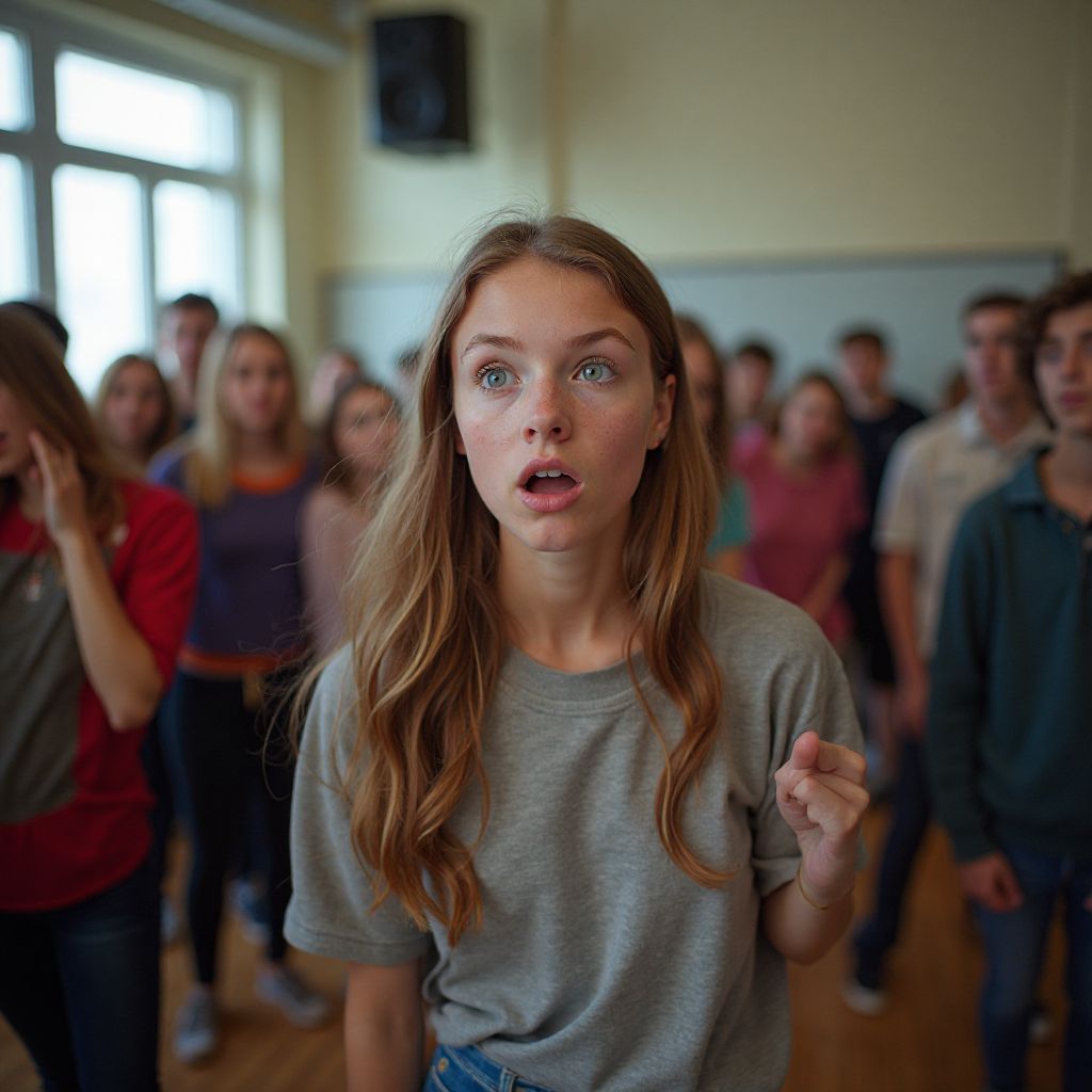 «Это письмо… Я его никогда не должна была найти, — проговорила Аня тихо, глядя на конверт. — В нём раскрывается истина о том, что случилось с моим братом много лет назад…» — голос дрожал, но она продолжала: «Его обвиняли в преступлении, которого он не совершал. Всё это время наш класс скрывал эту тайну. Это несправедливость, которую нельзя замалчивать». Засыпавший шёпот постепенно перерос в гул возмущения.