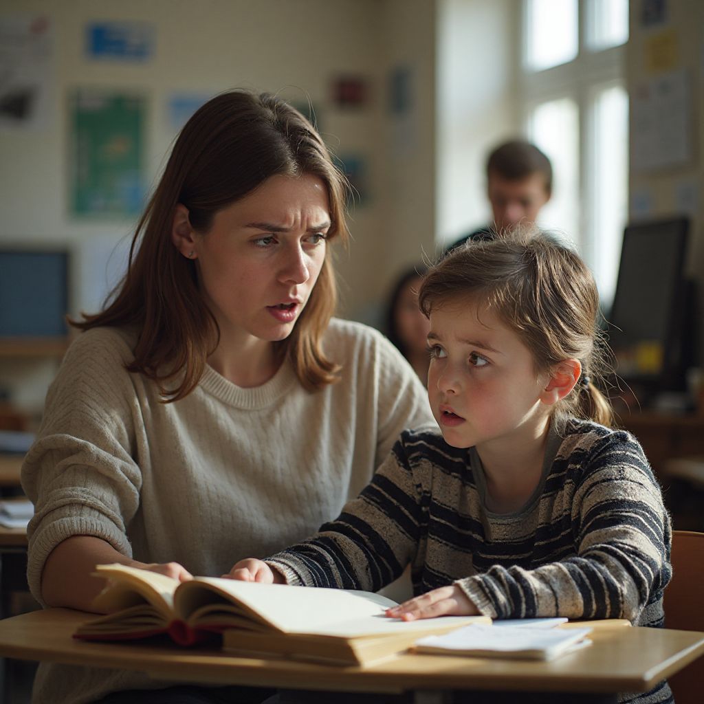 Ольга стояла у деревянного стола, взяла в руки дневник одного своего ученика — мальчика из бедной семьи, тихого и замкнутого. Она открыла его наугад и начала читать записи, первая строчка вызвала у неё мгновенную усталость и тревогу. В её голове роились мысли: «Почему никто не знал? Почему все молчали?». Сердце было тяжёлым; эти слова ребёнка звучали как крик души, наполненный болью и одиночеством. Она понимала — если сейчас она промолчит, никто не протянет руку помощи.