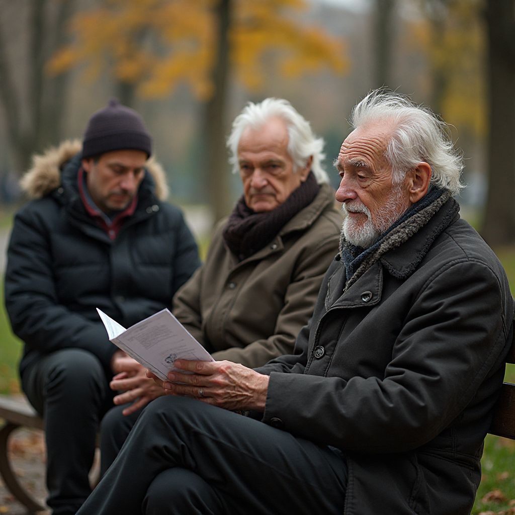 Вокруг скамейки появились другие люди: обычные прохожие, молодая женщина с коляской и старушка, ступившая медленно, опираясь на трость. Мужчина обратился к ним тихим, но твёрдым голосом: «Вы знаете, сколько таких, как я, было оставлено на обочине?» — спросил он. Один из молодых мужчин, недоверчиво улыбнувшись, ответил: «Да чего там — всем до нас дела нет.» Женщина кивнула и тихо добавила: «А те, кому повезло, просто молчат.» Мужчина кивнул, глаза его затуманились, и он внезапно сказал: «Сегодня я расскажу вам одну историю…», после чего скамейка словно ожила напряжением.