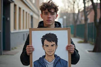 Марина стояла у витрины кафе, её глаза уважительно сканировали проходящих мимо выпускников в сверкающих платьях и аккуратных костюмах. Её лицо, обтянутое морщинами усталости, выглядело смущённым, но с оттенком гордости. Тёмные волосы, собранные в небрежный пучок, выбивались из-под потёртой кепки, а простая куртка с заплатками рассказывала о жизненных трудностях. Несмотря на это, в её ярких глазах горел тихий огонёк надежды — сегодня был особенный день для её сына.