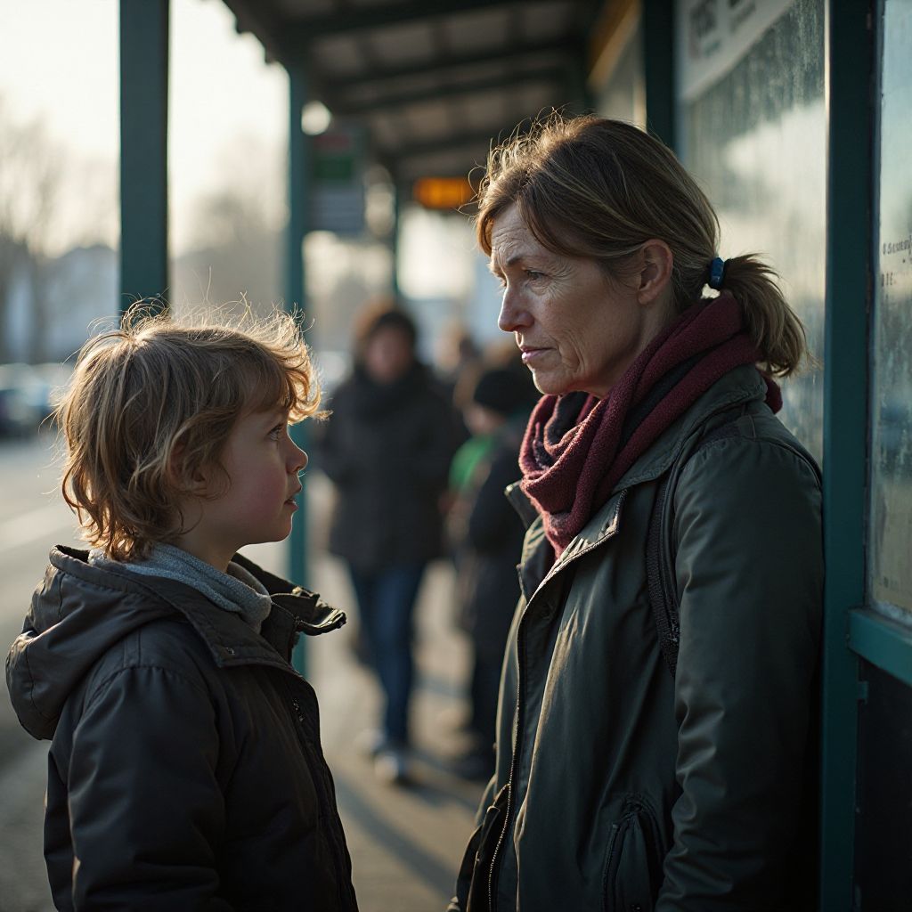 Марина осторожно взяла мальчика за руку, чувствуя её хрупкость и лёгкую дрожь. Внутри неё вспыхнуло желание защитить это маленькое существо. — «Кто ты и почему ты один в этом автобусе?» — её мысли кружились, словно вихрь. Рядом раздался голос пожилой женщины: — «Может, родом из бедности, оставлен, ведь в нашем городе детство становится роскошью для немногих». В глазах Марины промелькнула решимость — она должна помочь.