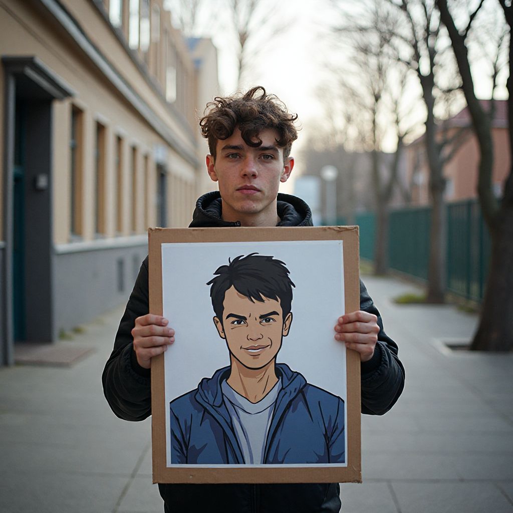 Мысленно парень перебирал свои слова, сомневаясь, стоит ли продолжать. «Почему никто меня не замечает? Мне нужно, чтобы меня услышали», — думал он. Внутри всё кипело — тревога, страх осуждения и надежда на справедливость. Этот плакат был его последним шансом разорвать молчание, но сердце билось так сильно, что казалось, каждый мог услышать его страх. Он вспоминал, как терпел унижения и пренебрежение в своей жизни, но теперь он готов был открыться всему городу, чтобы показать правду. Он стоял у входа в школу — месте, где его судьбу когда-то сломали.