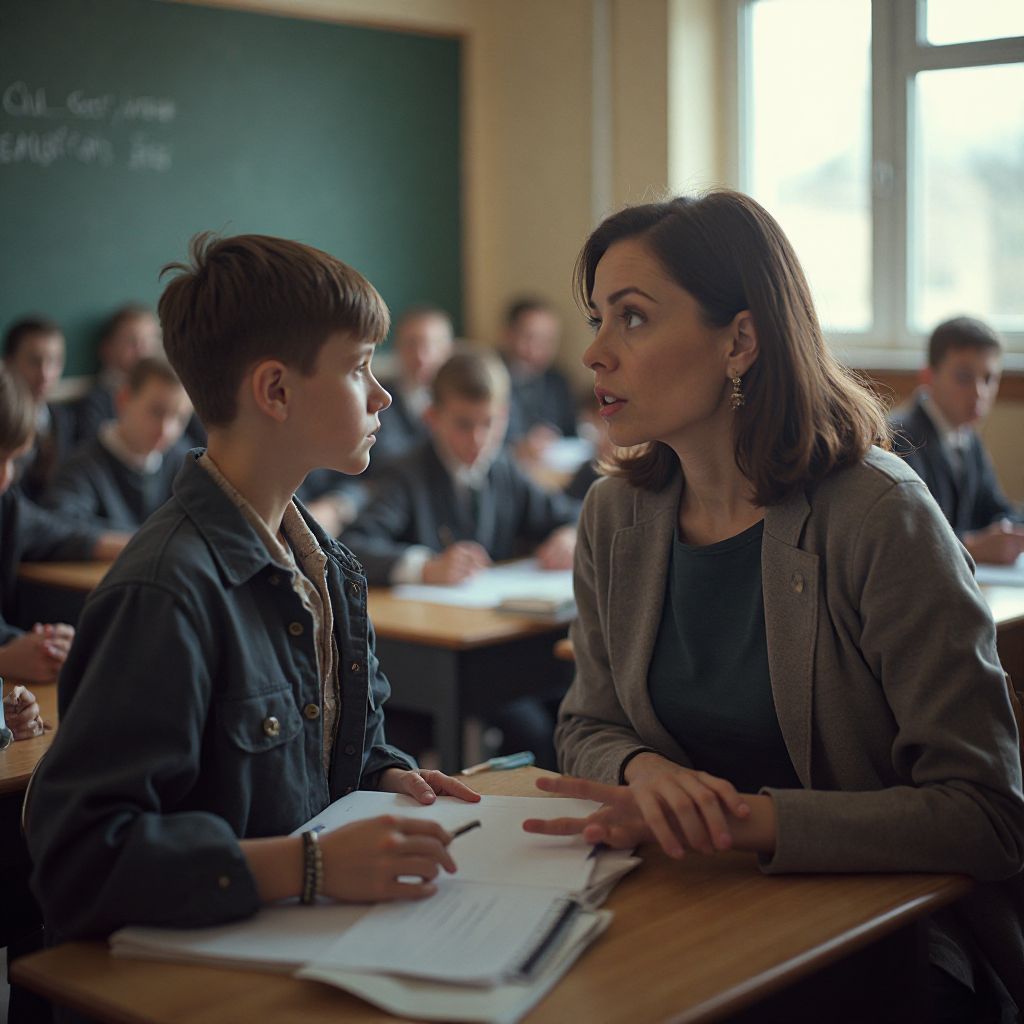 Тишина в классе повисла, словно густое покрывало, когда Илья впервые решился раскрыть свою боль. Его сердце билось так громко, что казалось — слышат не только одноклассники, но и каждый уголок этой старой школы. Свет, падающий через высокие окна, стал ярче, отражаясь в блестящих глазах учительницы, которые впервые за долгое время несли не только строгость, но и глубокое сострадание.