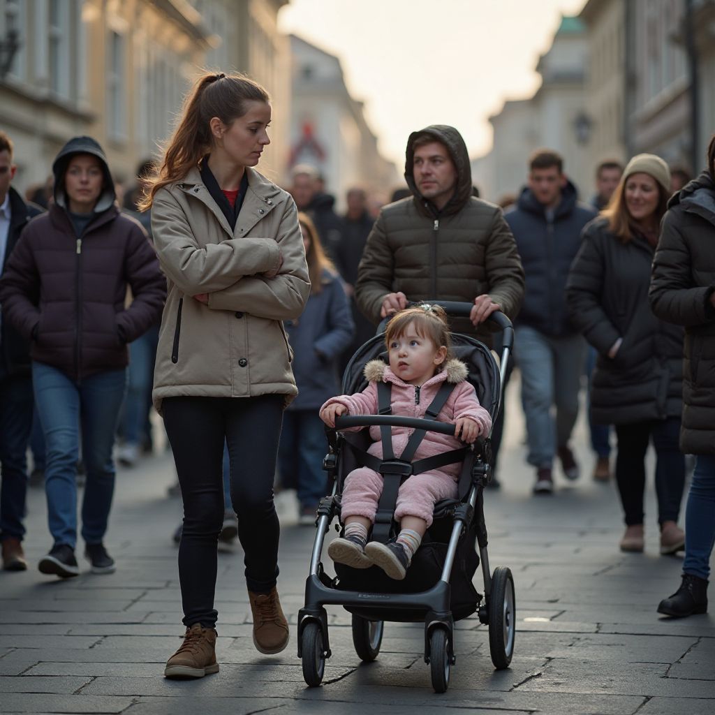 В воздухе повисла напряжённость, словно перед грозой. Марина замерла на мгновение, чувствуя, как ладони покрываются холодным потом. Её сердце бешено колотилось, в ушах звенело молчание, разрываемое колким смехом и перешёптыванием. «Нужно уйти отсюда», — промелькнуло в голове, но она крепко держала коляску, не в силах отдать малыша этому безразличию. Вдруг из толпы на мгновение подскользнулся звук вздоха — и женщина заметила, что все вокруг словно оцепенели, наблюдая за ней и ребёнком с легкой путаницей в глазах.