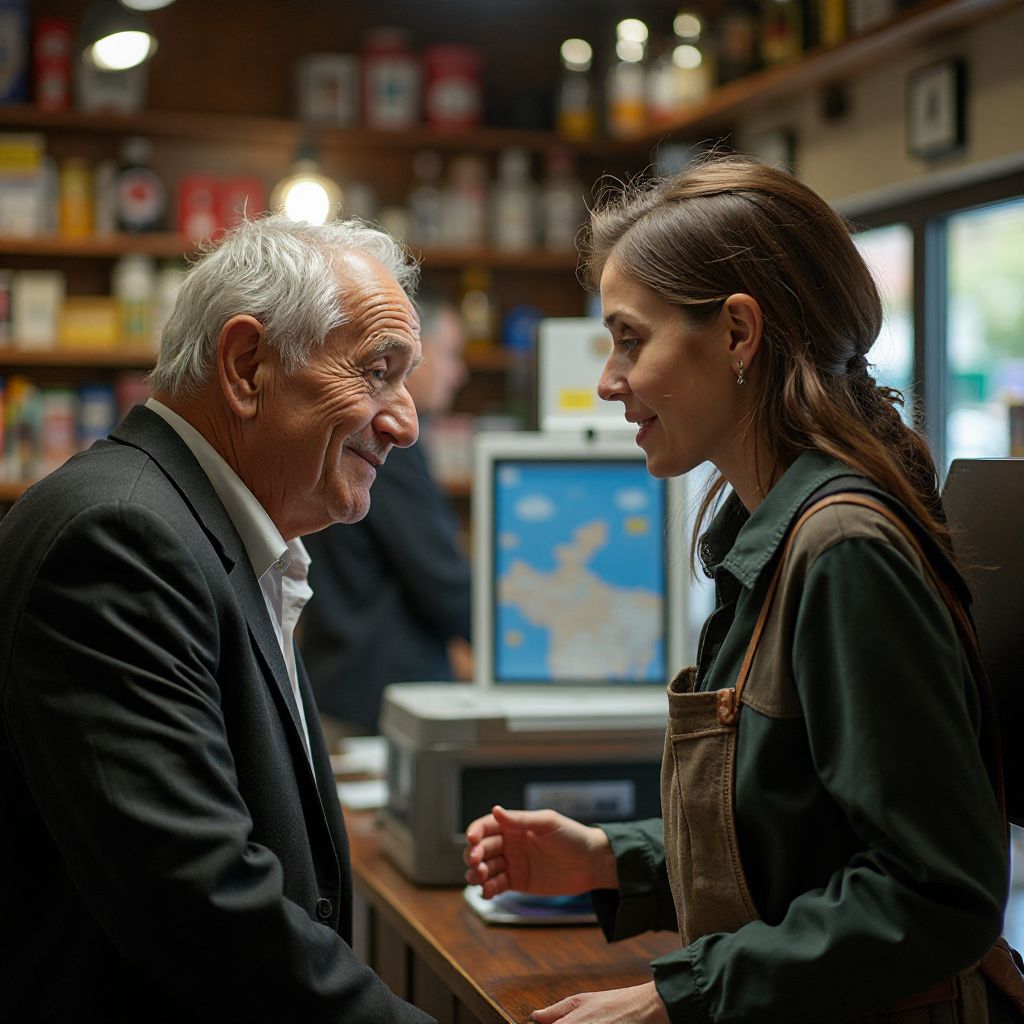 Старик медленно протянул дрожащую руку, в которой лежала замятая купюра. «Оставь это себе», — произнёс он так тихо, что казалось, сам удивился словам. Вокруг несколько покупателей оглянулись, всматриваясь в неподвижного старика, ловя каждое слово. «Вы уверены?» — спросила девушка, немного смущённо и инстинктивно отступая.