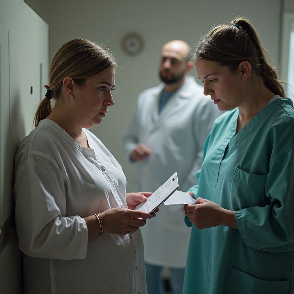 Слова вызвали напряжённый шёпот и настороженные взгляды. Один из врачей хмуро произнёс: «Это серьёзное обвинение. Нам нужно разобраться». «Но как? Мы сами едва справляемся с системой», — ответила акушер, её голос был полон бессилия. Ситуация накалялась с каждой секундой, страх и надежда смешивались в воздухе. Время казалось растянутым, каждое движение будто замедляло ход судьбы.