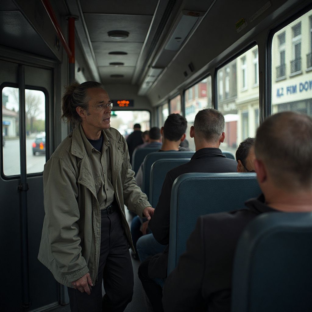 Водитель смотрел на пассажиров, осознавая каждую их реакцию — удивление, недоумение, настороженность. Он знал, что сегодня утром, когда отправился в этот рейс, всё казалось таким обыденным. Но что-то в воздухе изменилось. Сердце билось чаще с каждой секундой: в его голове роились мысли о том, что осталось позади и о тех, кого он должен защитить от несправедливости. Тревога переплеталась с решимостью, и он не мог больше молчать.