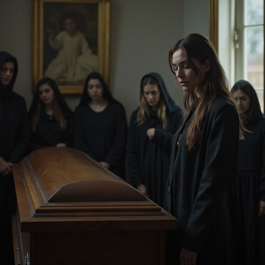 «Зачем эти все улыбки при похоронах, когда смерть разделяет так жестко?» — думала она, краем глаза замечая шепоты и взгляды. Внезапно острый звук — шаг на гравии — привлёк внимание. Одна из фигур у гроба остановилась, словно окаменев, каждый в толпе почувствовал этот резкий переход от суеты к неподвижности. Женщина сжала пальцы своей руки так, что ногти врезались в кожу. Внезапно прозвучало первое голосовое признание — тихое, дрожающее, но пронзительное.