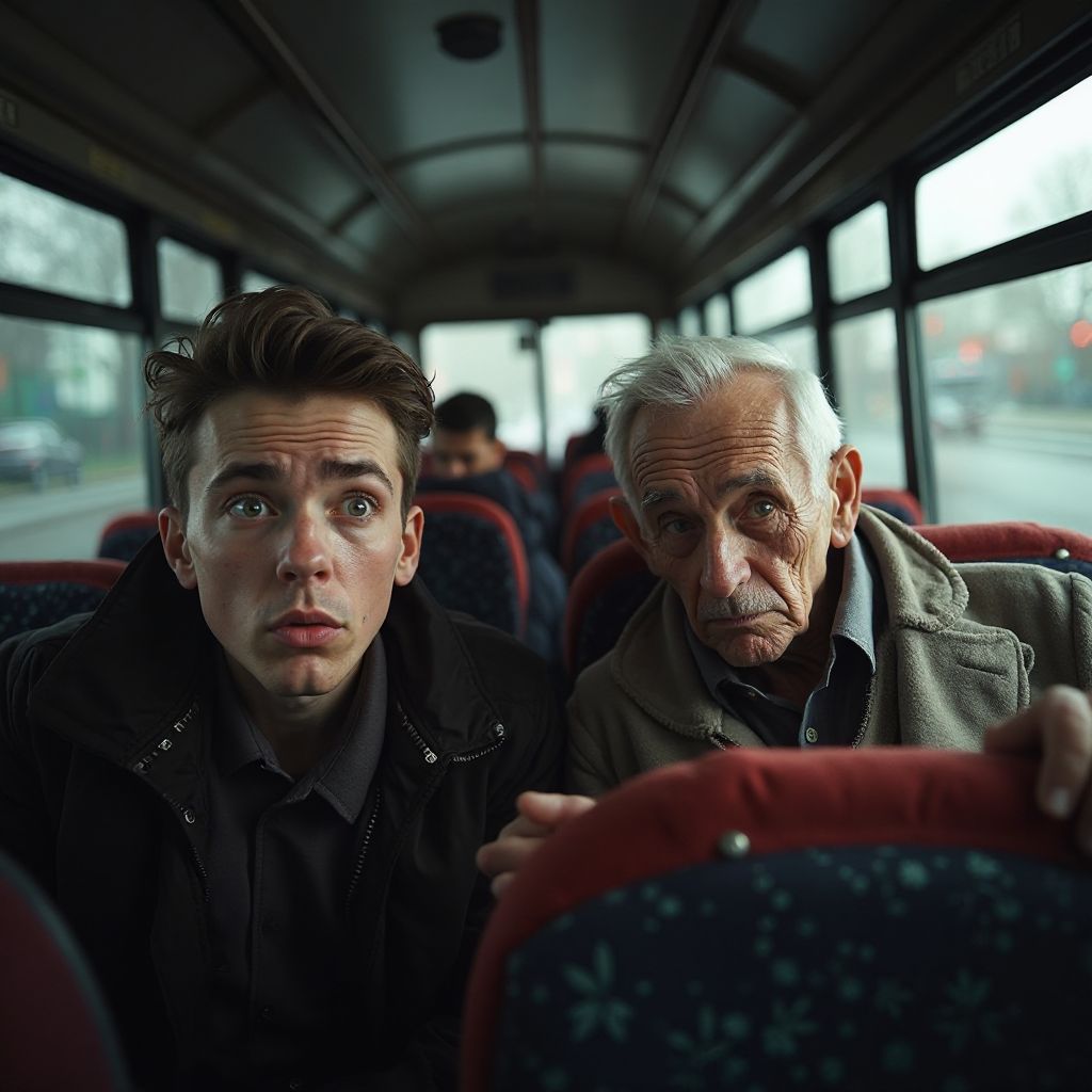 Мужчина сел на ближайшее кресло и пристально вглядывался в лицо старика. Его осанка, несмотря на усталость, была гордой, но глаза выдавали бесконечную печаль, словно он нёс на себе невидимый груз несправедливости и забвения. Уличные огни по-летнему мерцали через грязное стекло — контрастирующие миры богатых и бедных пересеклись здесь, в этом автобусе, где оба были чужими. Мысли о прошлом и будущем ломали его спокойствие: «Почему старик шепчет именно это имя? Что связывает их?». Дрожь ожидания пронизывала все тело — это была не случайная встреча.