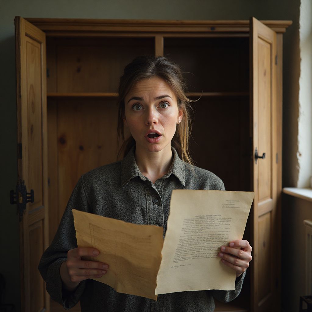 Внезапно деревянная дверь шкафа скрипнула громче обычного, и среди бумаг она заметила старый, потрёпанный пакет с письмами, связанный красной лентой. Письма выглядели очень старыми, пожелтевшими от времени. Наталья осторожно распустила ленту, и её пальцы слегка дрожали от непонятного напряжения. В этот момент шаги перестали эхом отражаться в коридоре — наступило мёртвое молчание. «Что это может быть?», — мелькнула мысль в её голове.