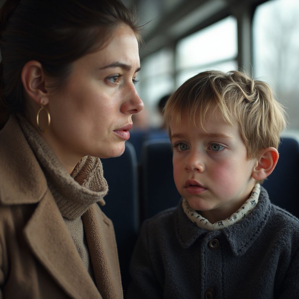 Воспоминания нахлынули, когда она вспомнила своих детей, их смех и бесконечную заботу о них. Её сердце болело от несправедливости, которую испытывал мальчик. «Почему взрослые забывают о главном? О человечности?» — думала она, пока автобус медленно тормозил на остановке.