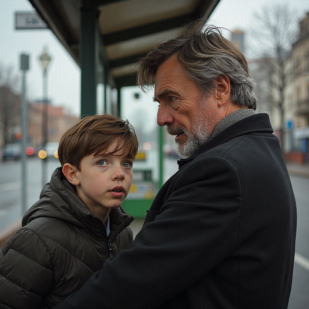 Воздух на остановке казался плотным и неспокойным, когда Женя тихо наклонился к мальчику и произнёс: «Расскажи, что ты знаешь?». Сердце мальчика вздрогнуло, губы чуть дрожали, но он взял себя в руки. «Это — секрет. Тот, что может спасти совсем других детей, таких как я», — голос звучал тихо, но отчётливо. Женя заметил, как вокруг сгущается тень, а лица людей на остановке застыли, наблюдая эту странную сцену. «Расскажи нам всё», — добавил старик, и Женя почувствовал, что простых ответов не будет.