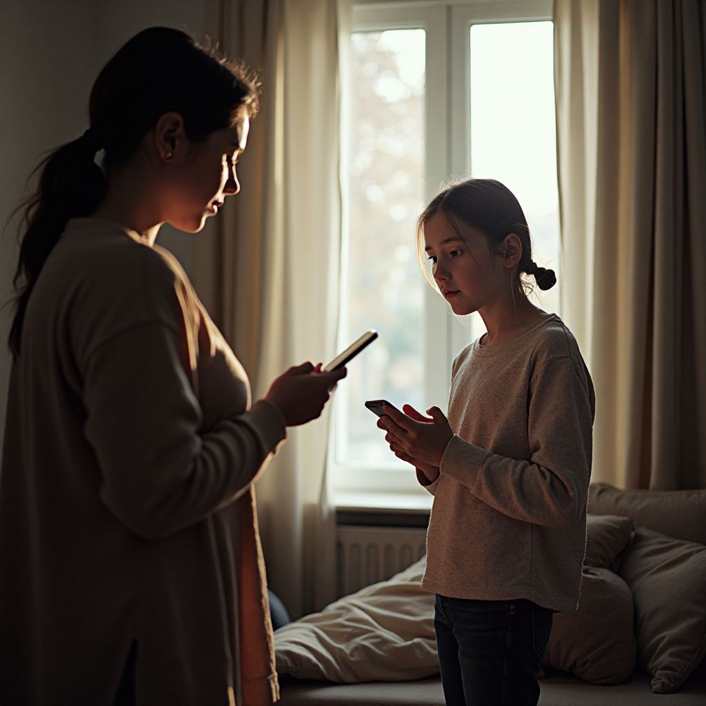Продолжение разговора застало мать врасплох. Телефон молчал, оставляя угрозу взора, наполненного слезами и страхом. Её дыхание стало прерывистым, а глаза наполнились горечью и испытали невысказанные слова.