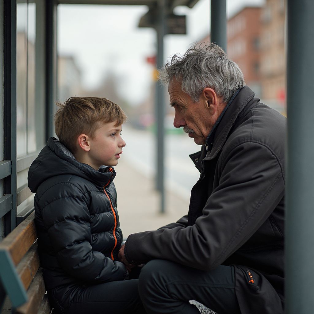 На остановке мальчик спросил у незнакомца шокирующую правду — и всё замерло