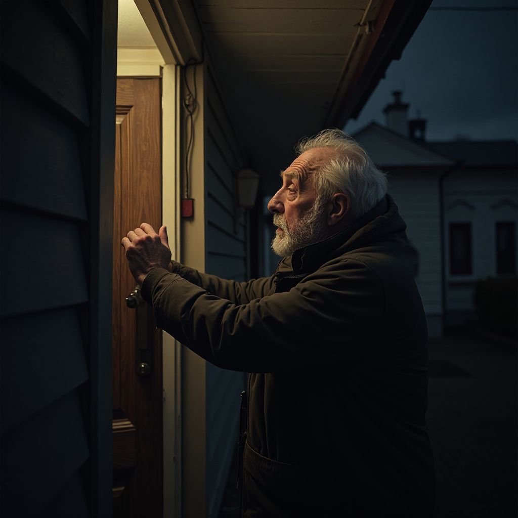 В мыслях пенсионера мелькали тревожные образы прошедших дней. Он давно не чувствовал себя таким уязвимым, как сейчас, стоя на пороге чужого дома в эту позднюю ночь. Мерцающий свет, доносившийся из-за окон, казался странно холодным. «Почему никто не отвечает? Кто теперь даст мне помощь, если завтра будет поздно?» — мысли путались в голове, сердце билось быстрее, а дыхание становилось прерывистым и тяжёлым. Он сжал кулаки в карманах, пытаясь справиться с резкой усталостью и внутренним волнением.